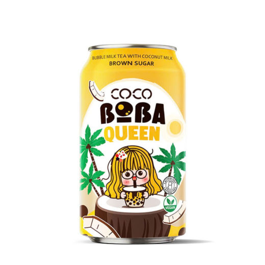 Satisfy your sweet tooth with the highly sought-after flavor of brown sugar boba, now entirely plant-based. The Boba Queen Vegan Bubble Tea With Coconut Milk And Brown Sugar Taste replaces traditional dairy with rich, tropical coconut milk. Blended with deeply roasted brown sugar syrup and our signature chewy pearls, this 330ml ready-to-drink can delivers an indulgent, guilt-free teahouse experience anywhere you go.